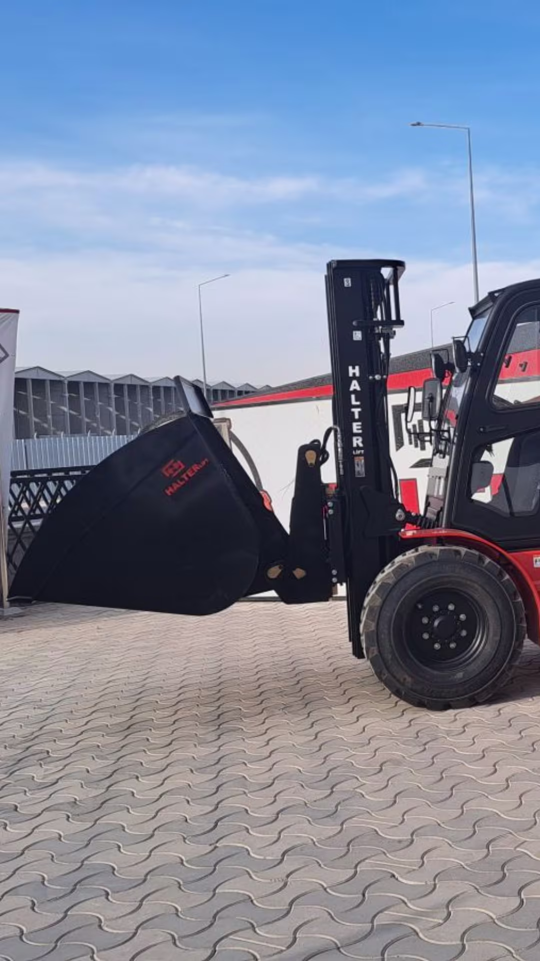 Dökme malzeme, kum, çakıl, tahıl, atık veya benzeri yüklerde yüksek performans arayan işletmeler için ideal olan Halterlift kova ataşmanı, forklifte tam uyumlu yapısı ve sağlam konstrüksiyonu ile uzun ömürlü, kesintisiz kullanım sunar.